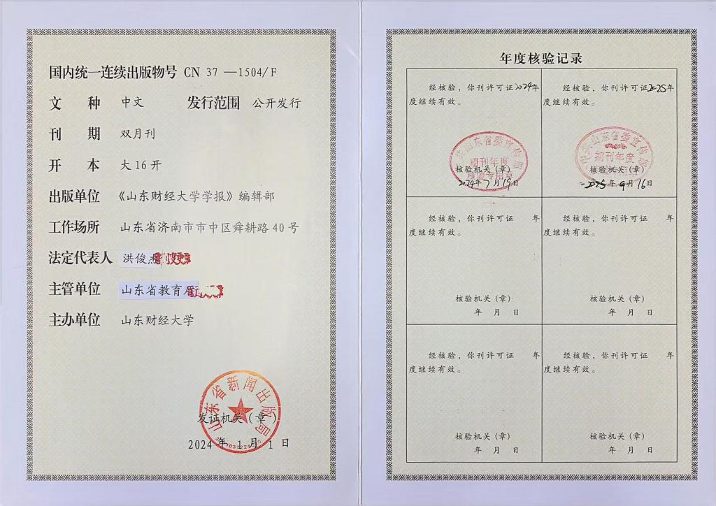 电话:0531-82617575,0531-82911052 邮箱:sdufe_xbbjb@126.com