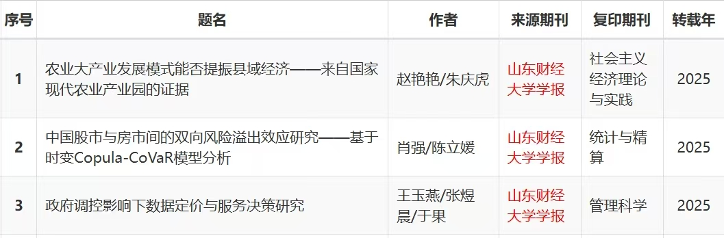 喜讯|《山东财经大学学报》三篇论文被人大复印报刊资料全文转载